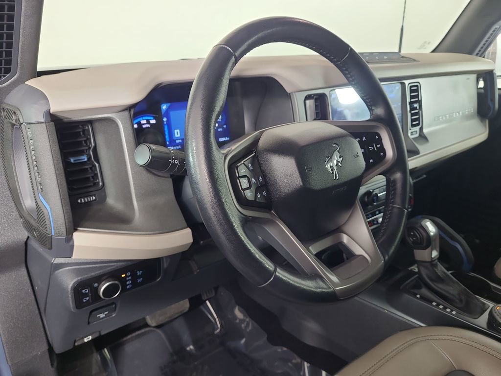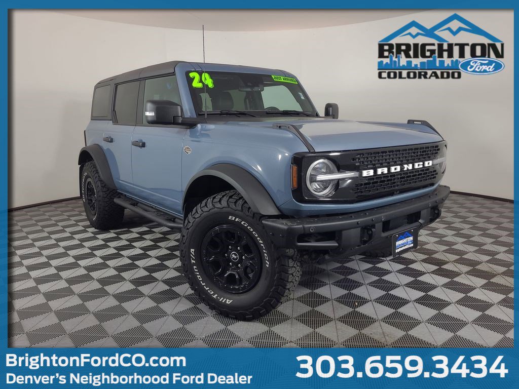 Priced below KBB Fair Purchase Price! FORD CO-PILOT360, ADAPTIVE CRUISE CONTROL, LANE MANAGEMENT SYSTEM, COLLISION WARNING SYSTEM, ONE OWNER, 360-DEGREE CAMERA, BLUETOOTH HANDS FREE, DUAL FACTORY AIR, HEATED STEERING WHEEL, HTD MIRRORS, PREMIUM WHEELS/TIRES, PARKING SENSORS, PREMIUM AUDIO, SYNC 4, FORDPASS CONNECT, TRAILER TOW PACKAGE, SOUND DEADENING HEADLINER, HARD TOP, GRAY MOLDED IN COLOR, LED SIGNATURE LIGHTING, CNCTD NAV CAPABLE, WIRELESS CHARGING PAD, HIGH/LUX PACKAGE, MID AND SASQUATCH PACKAGE, ACCIDENT FREE CARFAX. Azure Gray Metallic Tri-Coat 2024 Ford Bronco Wildtrak 4WD 10-Speed Automatic 2.7L EcoBoost V6