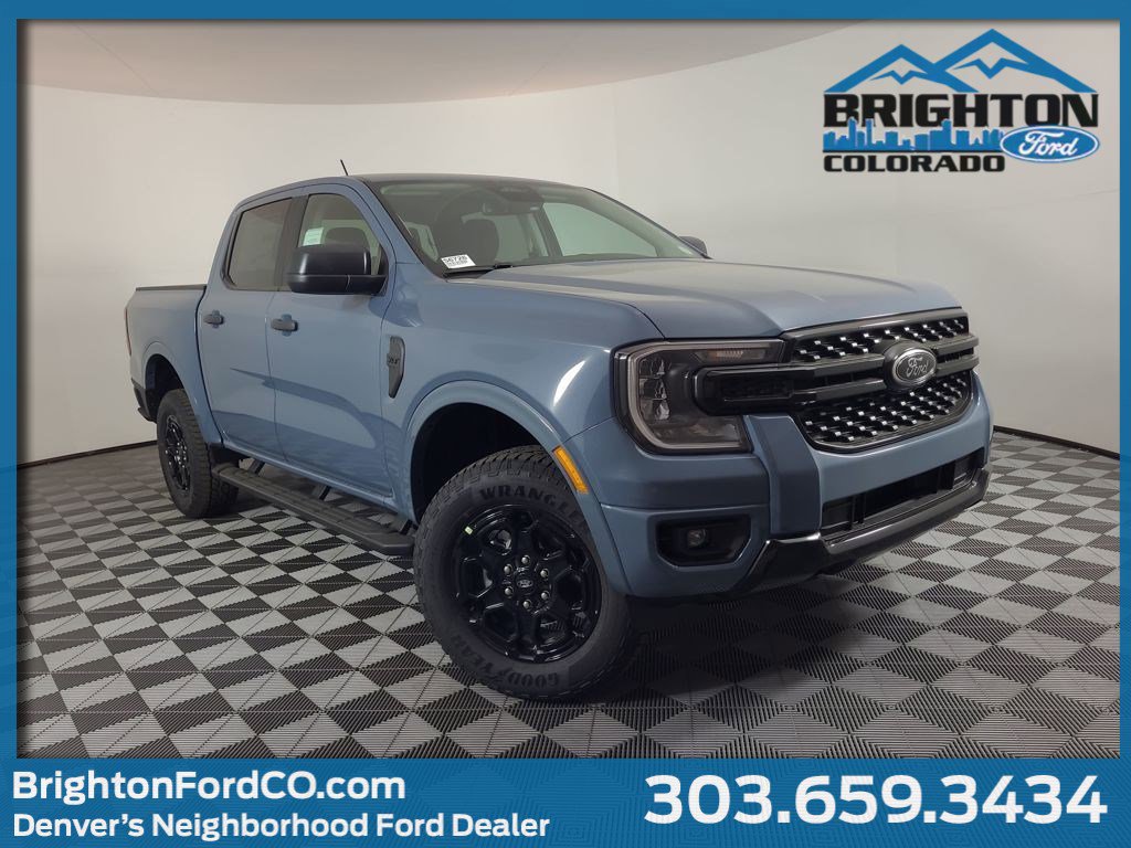 $6,773 off MSRP! 2025 Azure Gray Metallic Tri-Coat Ford Ranger XLT 4WD 10-Speed Automatic EcoBoost 2.3L I4 GTDi DOHC Turbocharged VCT