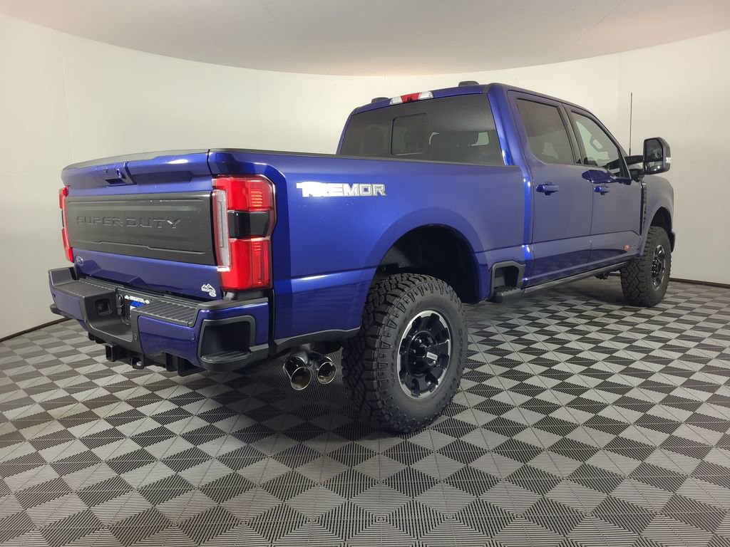 4WD, 5th Wheel/Gooseneck Hitch Prep Package, Electronic-Locking with 3.55 Axle Ratio, Flow-Through Console, Ford Connectivity Package (1-Year Included), GVWR: F-250 >10K Package, High Capacity 11.6 Axle Upgrade Package, Internet access capable: 5G Modem - Ford Connectivity Package, Max Recline Seats, Navigation system: Connected Navigation, Order Code 703A, Pro Power Onboard - 2kW, Radio: B&O Unleashed Sound System by Bang & Olufsen, SiriusXM with 360L, SYNC 4 with Enhanced Voice Recognition, Textured Matte Finish Off-Road Running Boards, Tremor Off-Road Decal, Tremor Off-Road Package, Twin Panel Power Moonroof, Unique Platinum Leather 40/Console/40 Seats, Wheels: 18 Ebony Black Machined and Painted Aluminum.