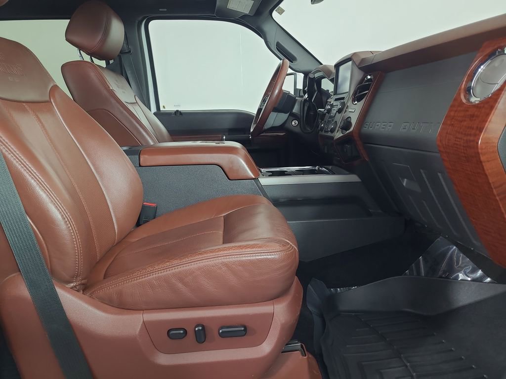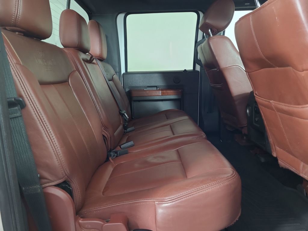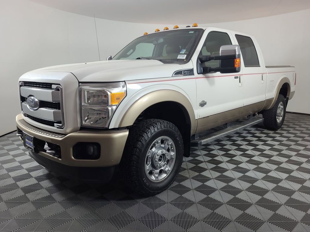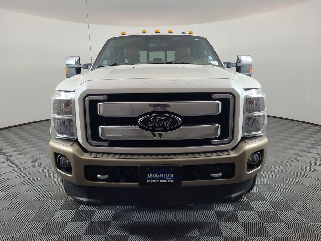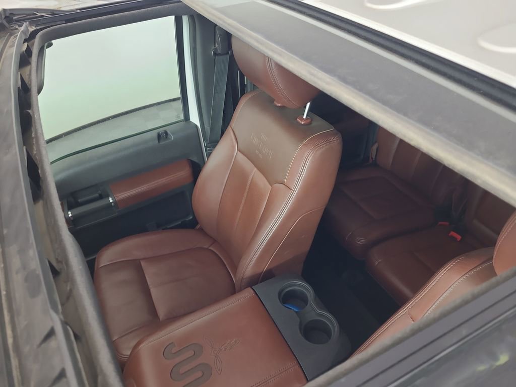 NAVIGATION SYSTEM, ONE OWNER, POWER SUNROOF, LEATHER, REARVIEW CAMERA SYST, BLUETOOTH HANDS FREE, DUAL FACTORY AIR, HTD/COOLED SEAT PKG, PREMIUM WHEELS/TIRES, PARKING SENSORS, POWER SLIDING REAR WINDOW, PREMIUM AUDIO, POWER FOLDING SIDE MIRRORS, RUNNING BOARDS, REMOTE START, REAR HEATED SEATS, KEYLESS ENTRY, KING RANCH CHROME PACKAGE, LOWER ACCENT TWO-TONE PAINT, CAMPER PACKAGE, ROOF CLEARANCE LIGHTS, TAILGATE STEP, TRAILER TOW PACKAGE, 4WD. White Platinum Metallic Tri-Coat 2014 Ford F-350SD King Ranch 4WD TorqShift 6-Speed Automatic with Overdrive Power Stroke 6.7L V8 DI 32V OHV Turbodiesel