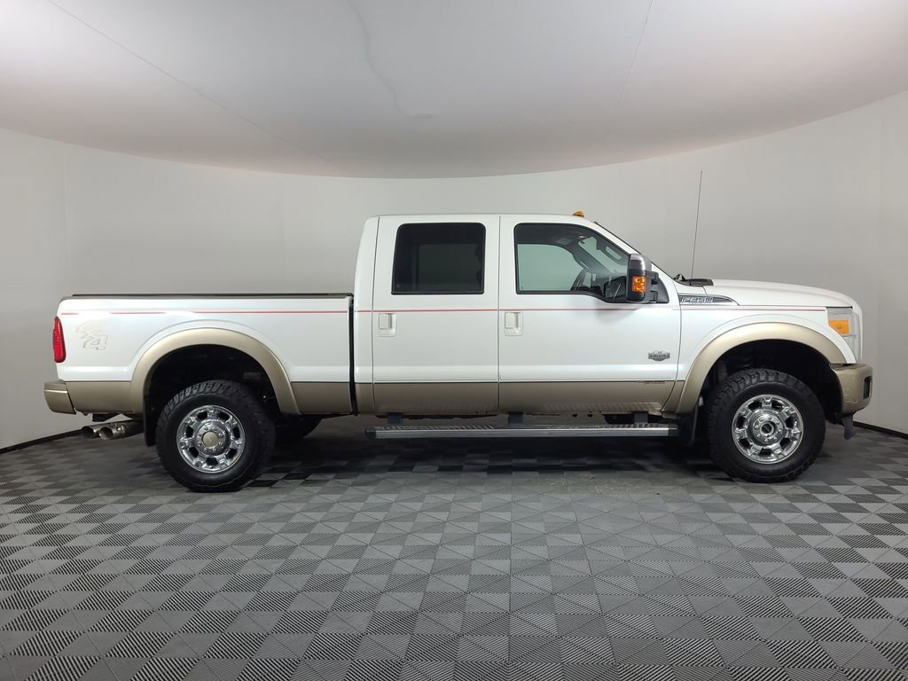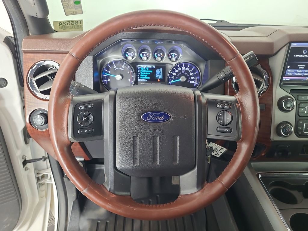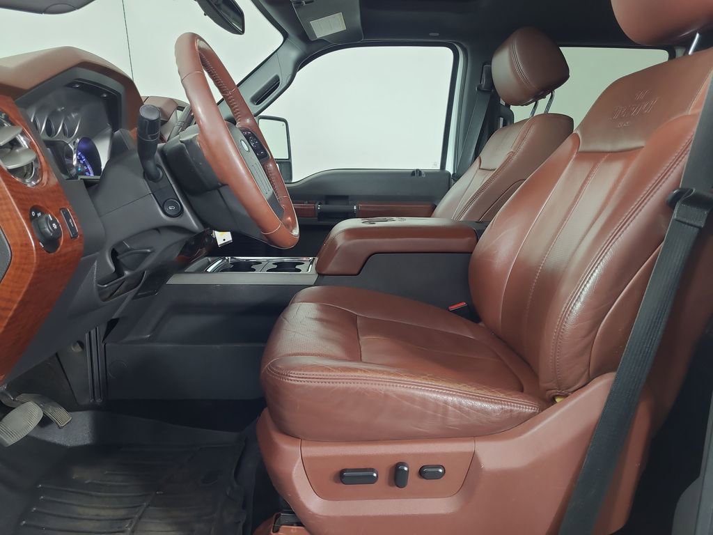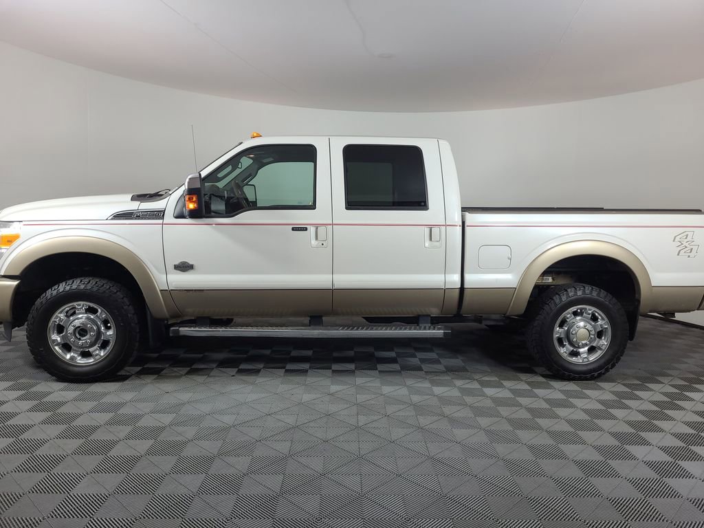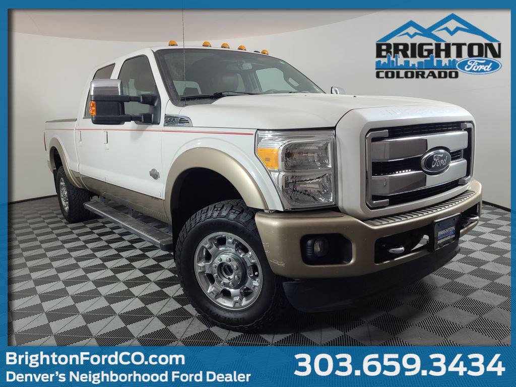 NAVIGATION SYSTEM, ONE OWNER, POWER SUNROOF, LEATHER, REARVIEW CAMERA SYST, BLUETOOTH HANDS FREE, DUAL FACTORY AIR, HTD/COOLED SEAT PKG, PREMIUM WHEELS/TIRES, PARKING SENSORS, POWER SLIDING REAR WINDOW, PREMIUM AUDIO, POWER FOLDING SIDE MIRRORS, RUNNING BOARDS, REMOTE START, REAR HEATED SEATS, KEYLESS ENTRY, KING RANCH CHROME PACKAGE, LOWER ACCENT TWO-TONE PAINT, CAMPER PACKAGE, ROOF CLEARANCE LIGHTS, TAILGATE STEP, TRAILER TOW PACKAGE, 4WD. White Platinum Metallic Tri-Coat 2014 Ford F-350SD King Ranch 4WD TorqShift 6-Speed Automatic with Overdrive Power Stroke 6.7L V8 DI 32V OHV Turbodiesel