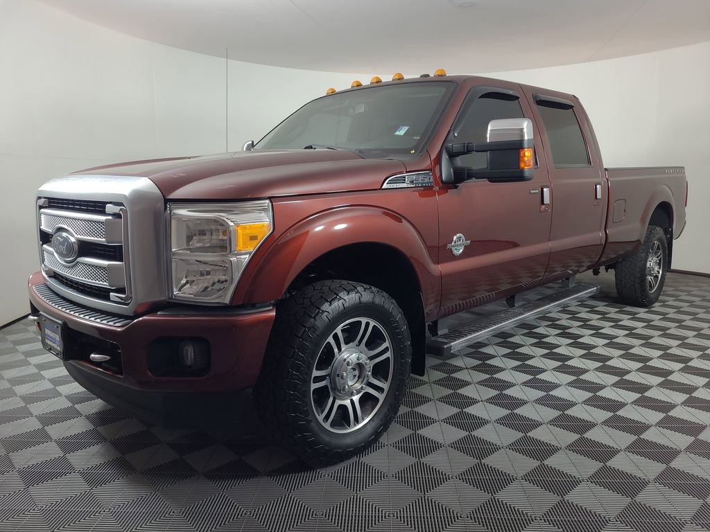 NAVIGATION SYSTEM, POWER SUNROOF, REARVIEW CAMERA SYST, FX4 OFF-ROAD PACKAGE, BLUETOOTH HANDS FREE, CRUISE CONTROL, DUAL FACTORY AIR, HTD/COOLED SEAT PKG, HEATED STEERING WHEEL, HTD MIRRORS, PREMIUM WHEELS/TIRES, PARKING SENSORS, POWER ADJUSTABLE PEDALS, POWER SLIDING REAR WINDOW, PREMIUM AUDIO, POWER FOLDING SIDE MIRRORS, RUNNING BOARDS, REMOTE START, REAR HEATED SEATS, ROOF CLEARANCE LIGHTS, 5TH WHEEL HITCH PREP PACKAGE, MEMORY GROUP, TAIL GATE STEP, ACCIDENT FREE CARFAX, 4WD. Bronze Fire Metallic 2016 Ford F-350SD Platinum 4WD TorqShift 6-Speed Automatic Power Stroke 6.7L V8 DI 32V OHV Turbodiesel