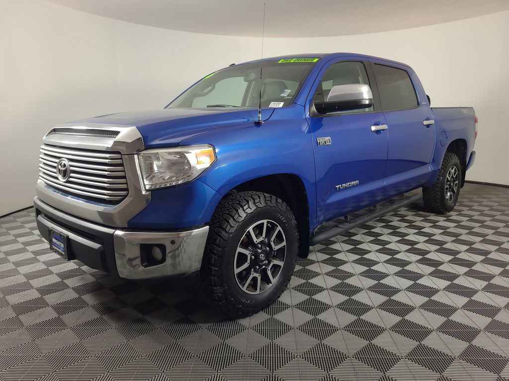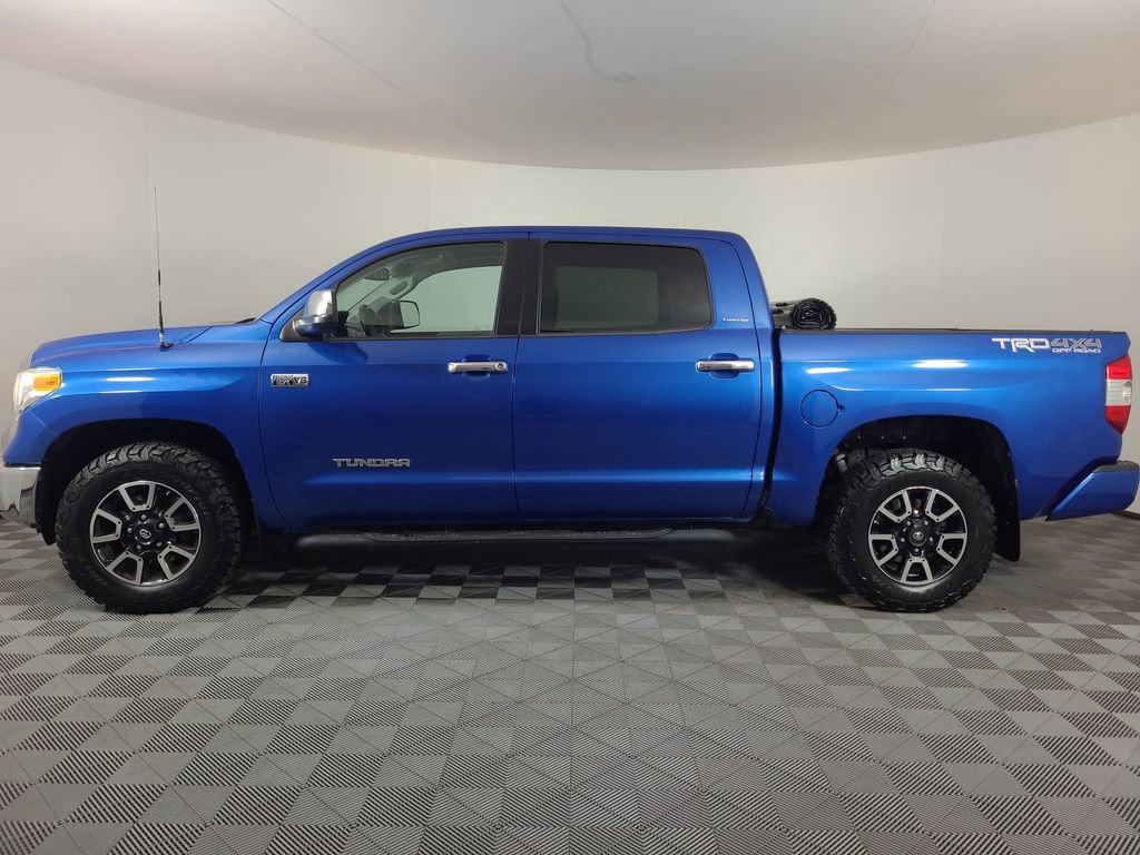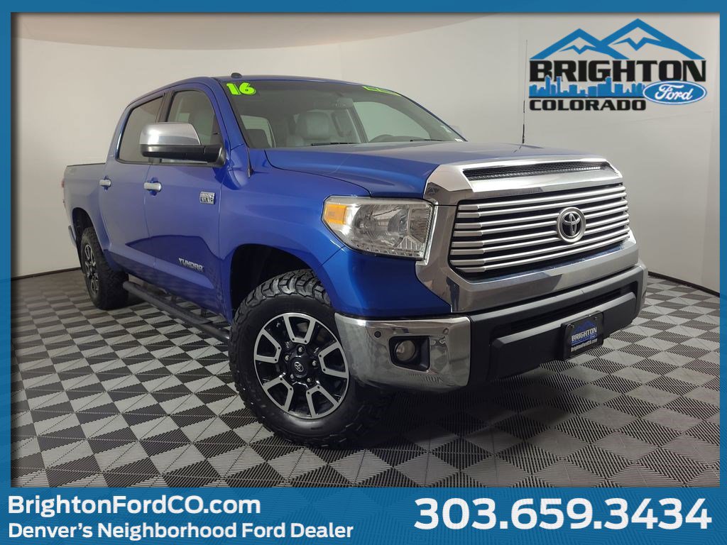Priced below KBB Fair Purchase Price! ONE OWNER, POWER SUNROOF, LEATHER, REARVIEW CAMERA SYST, DUAL FACTORY AIR, HEATED SEAT PKG, TRD OFF ROAD PKG, PREMIUM WHEELS/TIRES, PREMIUM AUDIO, SPRAY IN BED LINER, TONNEAU COVER, KEYLESS ENTRY, ACCIDENT FREE CARFAX, THIS UNIT HAS SOME UNREPAIRED HAIL DENTS ON THE HOOD AND ROOF, 4WD, Graphite w/Leather Seat Trim or Leather Seat Trim w/TRD Off-Road Package. Blazing Blue Pearl 2016 Toyota Tundra Limited 4WD 6-Speed Automatic Electronic with Overdrive i-Force 5.7L V8 Flex Fuel DOHC 32V LEV