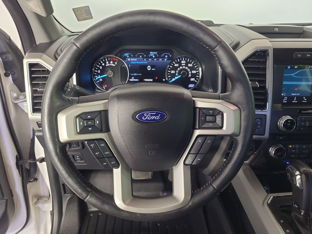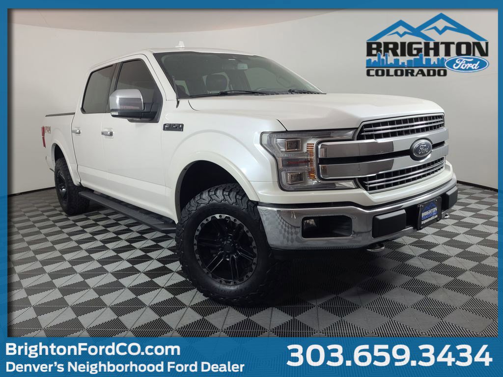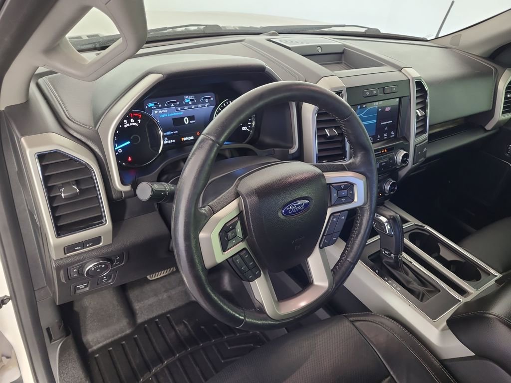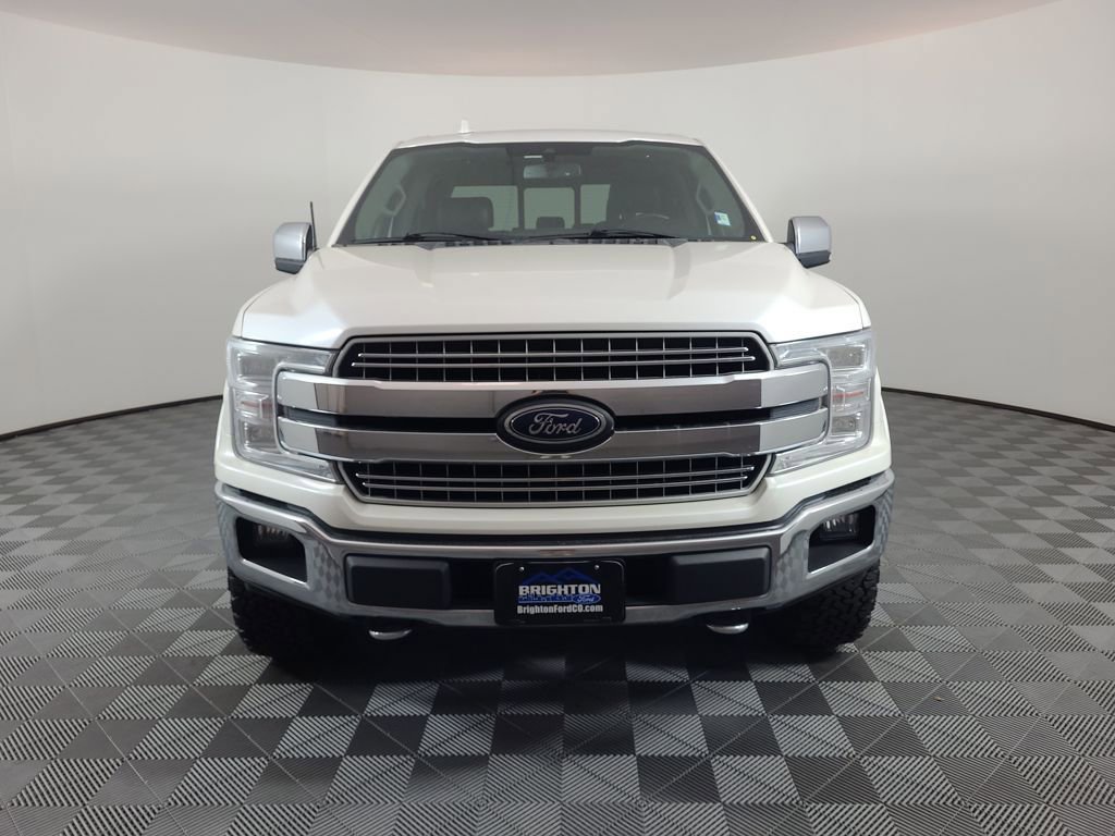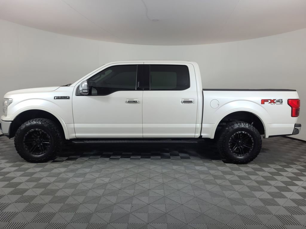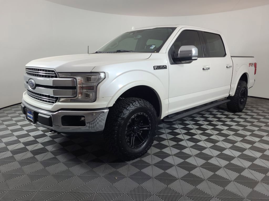 BLIND SPOT MONITORING SYSTEM, NAVIGATION SYSTEM, TWIN PANEL MOONROOF, LEATHER, REARVIEW CAMERA SYST, FX4 OFF-ROAD PACKAGE, BLUETOOTH HANDS FREE, CRUISE CONTROL, DUAL FACTORY AIR, HTD/COOLED SEAT PKG, HEATED STEERING WHEEL, HTD MIRRORS, PREMIUM WHEELS/TIRES, PARKING SENSORS, POWER ADJUSTABLE PEDALS, POWER SLIDING REAR WINDOW, PREMIUM AUDIO, POWER FOLDING SIDE MIRRORS, RUNNING BOARDS, REMOTE START, REAR HEATED SEATS, SYNC 3, 36 GALLON FUEL TANK, KEYLESS ENTRY, PRO TRAILER BACKUP ASSIST, LARIAT CHROME APPEARANCE PKG, INTEGRATED TRAILER BRAKE CONTROLLER, TAILGATE STEP, TRAILER TOW PACKAGE, 4WD. White Platinum Metallic Tri-Coat 2018 Ford F-150 Lariat 4WD 10-Speed Automatic 3.5L V6 EcoBoost