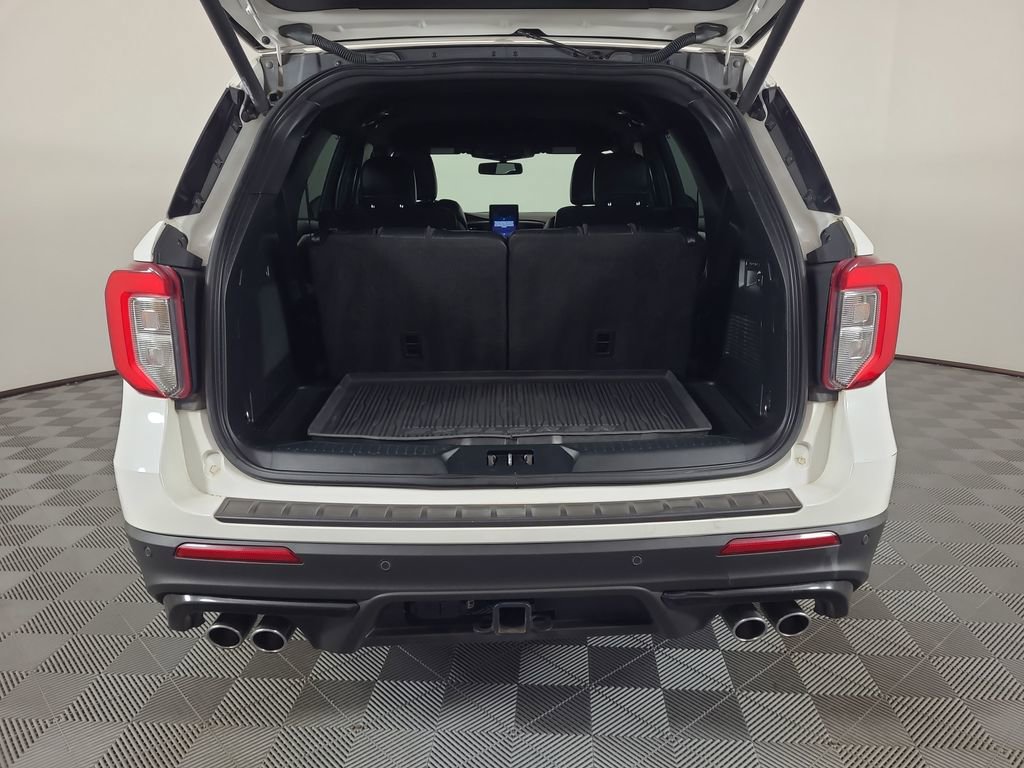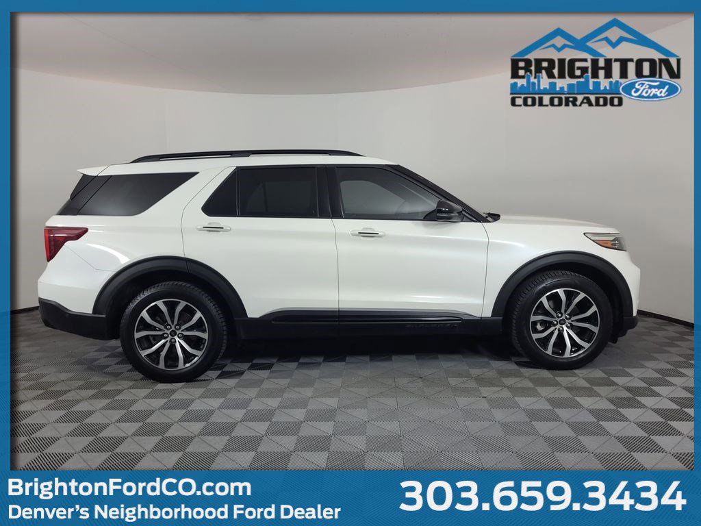 ADAPTIVE CRUISE CONTROL, BLIND SPOT MONITORING SYSTEM, LANE MANAGEMENT SYSTEM, COLLISION WARNING SYSTEM, NAVIGATION SYSTEM, LEATHER, 360-DEGREE CAMERA, REARVIEW CAMERA SYST, BLUETOOTH HANDS FREE, HTD/COOLED SEAT PKG, HEATED STEERING WHEEL, HTD MIRRORS, POWER LIFTGATE, PREMIUM WHEELS/TIRES, PARKING SENSORS, PREMIUM AUDIO, POWER FOLDING SIDE MIRRORS, REMOTE START, REAR HEATED SEATS, MULTI ZONE CLIMATE CONTROL, SYNC 3, FORDPASS CONNECT, PREMIUM TECHNOLOGY PACKAGE, MULTICONTOUR FRONT SEATS, POWER FOLD 3RD ROW SEAT, ACTIVE PARK ASSIST 2.0, CLASS III TRAILER TOW PACKAGE, FORD CO-PILOT360 ASSIST+, ACCIDENT FREE CARFAX, 4WD. Star White Metallic Tri-Coat 2020 Ford Explorer ST 4WD 10-Speed Automatic 3.0L EcoBoost V6