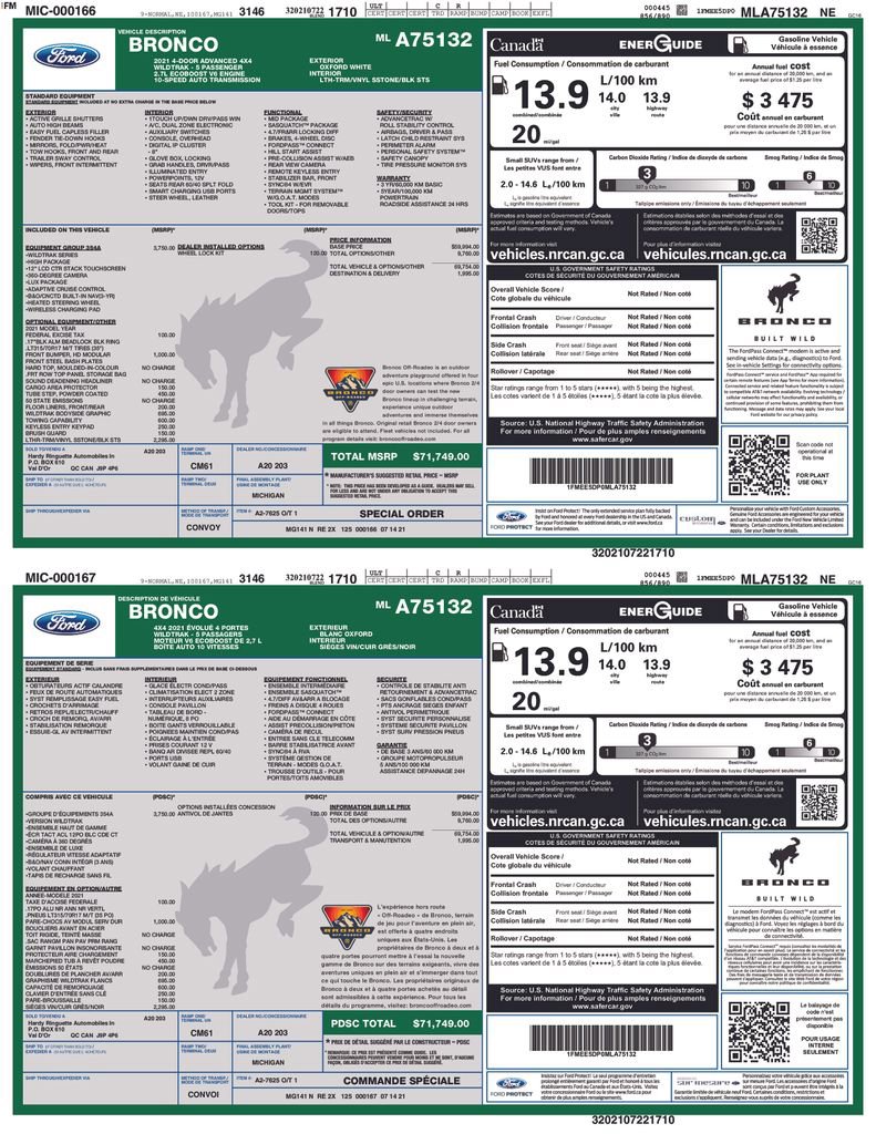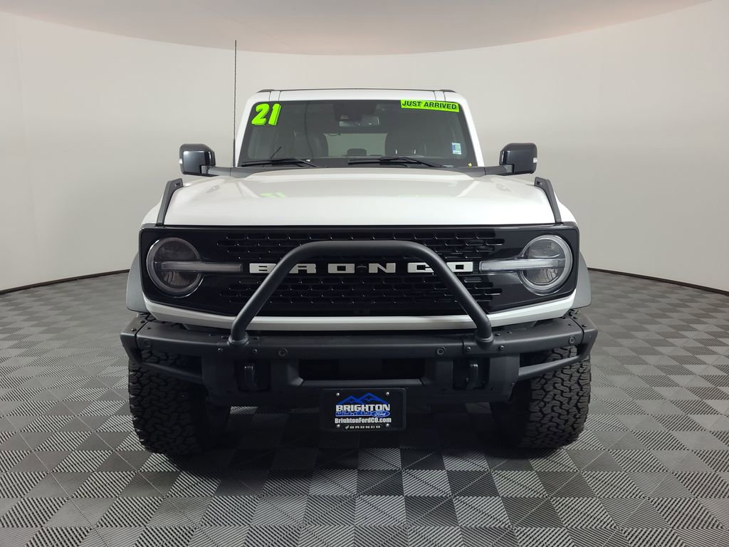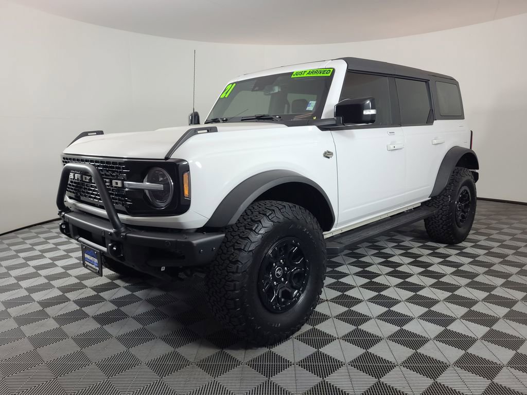 Priced below KBB Fair Purchase Price! ADAPTIVE CRUISE CONTROL, COLLISION WARNING SYSTEM, SASQUATCH PACKAGE, 360-DEGREE CAMERA, REARVIEW CAMERA SYST, BLUETOOTH HANDS FREE, DUAL FACTORY AIR, HEATED STEERING WHEEL, HTD MIRRORS, PREMIUM WHEELS/TIRES, PREMIUM AUDIO, SYNC 4, FORDPASS CONNECT, KEYLESS ENTRY, KEYLESS ENTRY KEYPAD, TOWING CAPABILITY, WILDTRK BODYSIDE GRAPHIC, TUBESTEPS POWDER COATED, HD MODULAR FRONT BUMPER, WIRELESS CHARGING PAD, NAVIGATION CAPABLE, LUX PACKAGE, HIGH PACKAGE, ACCIDENT FREE CARFAX. Oxford White 2021 Ford Bronco Wildtrak 4WD 10-Speed Automatic 2.7L EcoBoost V6