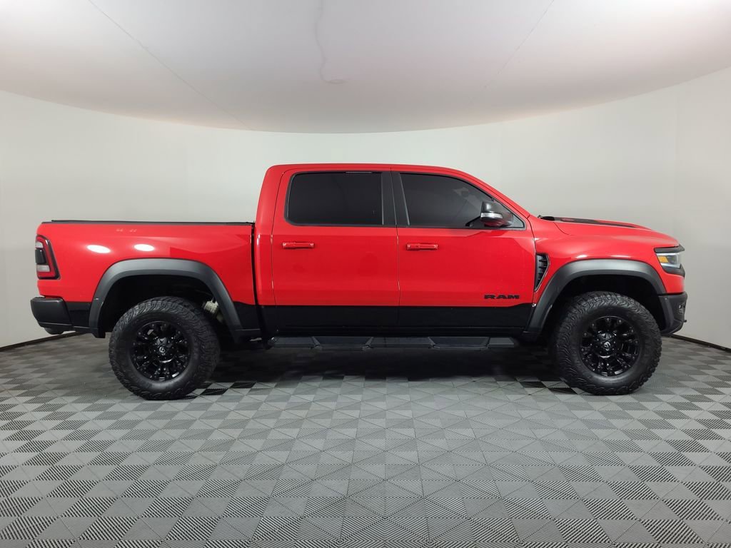 Priced below KBB Fair Purchase Price! ADAPTIVE CRUISE CONTROL, BLIND SPOT MONITORING SYSTEM, LANE MANAGEMENT SYSTEM, COLLISION WARNING SYSTEM, NAVIGATION SYSTEM, LEATHER, 360 CAMERA VIEW, REARVIEW CAMERA SYST, BLUETOOTH HANDS FREE, DUAL FACTORY AIR, HTD/COOLED SEAT PKG, HEATED STEERING WHEEL, HTD MIRRORS, PREMIUM WHEELS/TIRES, PARKING SENSORS, POWER ADJUSTABLE PEDALS, POWER SLIDING REAR WINDOW, PREMIUM AUDIO, POWER FOLDING SIDE MIRRORS, RUNNING BOARDS, REMOTE START, REAR HEATED SEATS, SPRAY IN BED LINER, TONNEAU COVER, KEYLESS ENTRY, ADVANCED SAFETY GROUP, TRX LEVEL 2 EQUIPMENT GROUP, TRAILER BRAKE CONTROLLER, POWER TAILGATE-RELEASE, PERFORMANCE HOOD, CLASS IV RECEIVER HITCH, ACCIDENT FREE CARFAX. Flame Red Clearcoat 2021 Ram 1500 TRX 4WD 8-Speed Automatic 6.2L Supercharged HEMI V8 SRT
