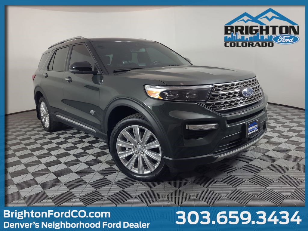 FORD CO-PILOT360, ONE OWNER, TWIN PANEL MOONROOF, LEATHER, 360-DEGREE CAMERA, REARVIEW CAMERA SYST, BLUETOOTH HANDS FREE, DUAL FACTORY AIR, HTD/COOLED SEAT PKG, HEATED STEERING WHEEL, HTD MIRRORS, POWER 3RD SEAT, POWER LIFTGATE, PREMIUM WHEELS/TIRES, PARKING SENSORS, POWER FOLDING SIDE MIRRORS, REMOTE START, MULTI ZONE CLIMATE CONTROL, SYNC 3, KEYLESS ENTRY, CARGO MANAGEMENT SYSTEM, CLASS IV TRAILER TOW PACKAGE, LED SIGNATURE LIGHTING, 2ND ROW HEATED SEATS, BANG & OLUFSEN SOUND SYSTEM with 14 SPEAKERS, PREMIUM TECHNOLOGY PACKAGE, TERRAIN MANAGEMENT SYSTEM, WIRELESS CHARGING PAD, PERIMETER ALARM, ACCIDENT FREE CARFAX, 4WD. Forged Green Metallic 2022 Ford Explorer King Ranch 4WD 10-Speed Automatic 3.0L EcoBoost V6