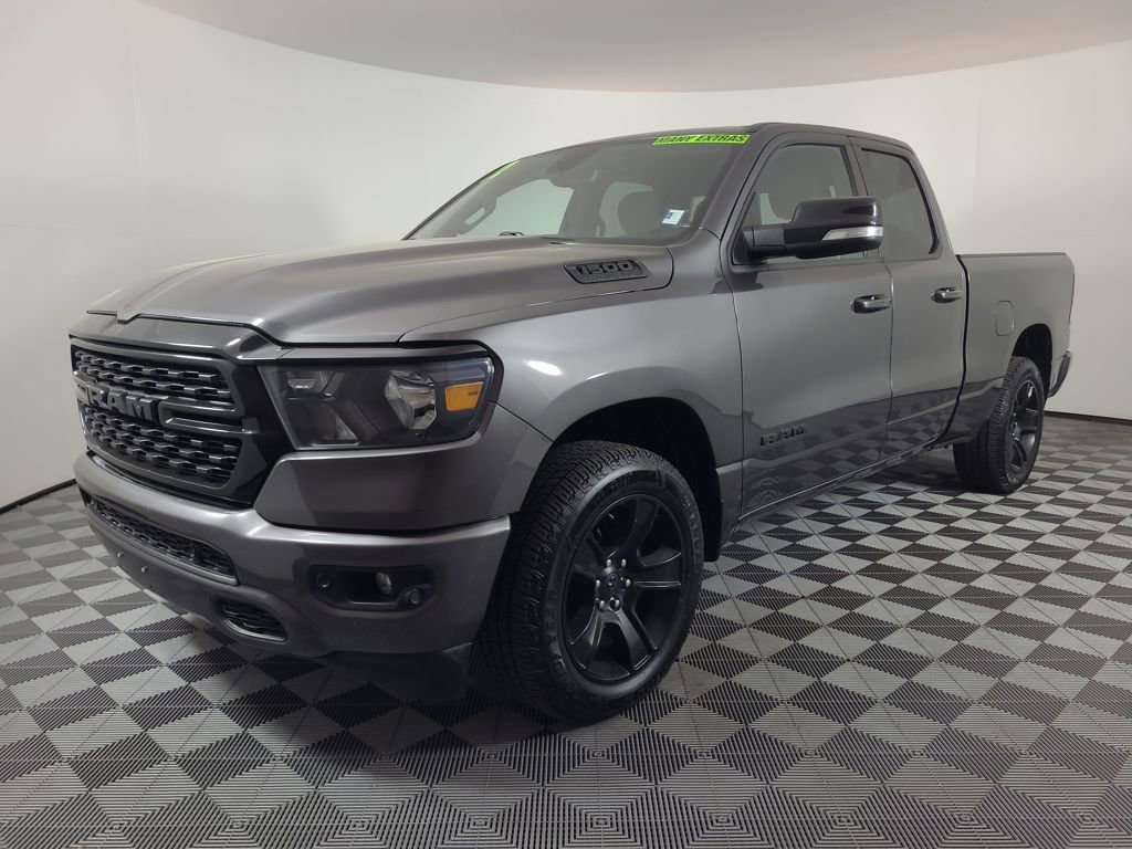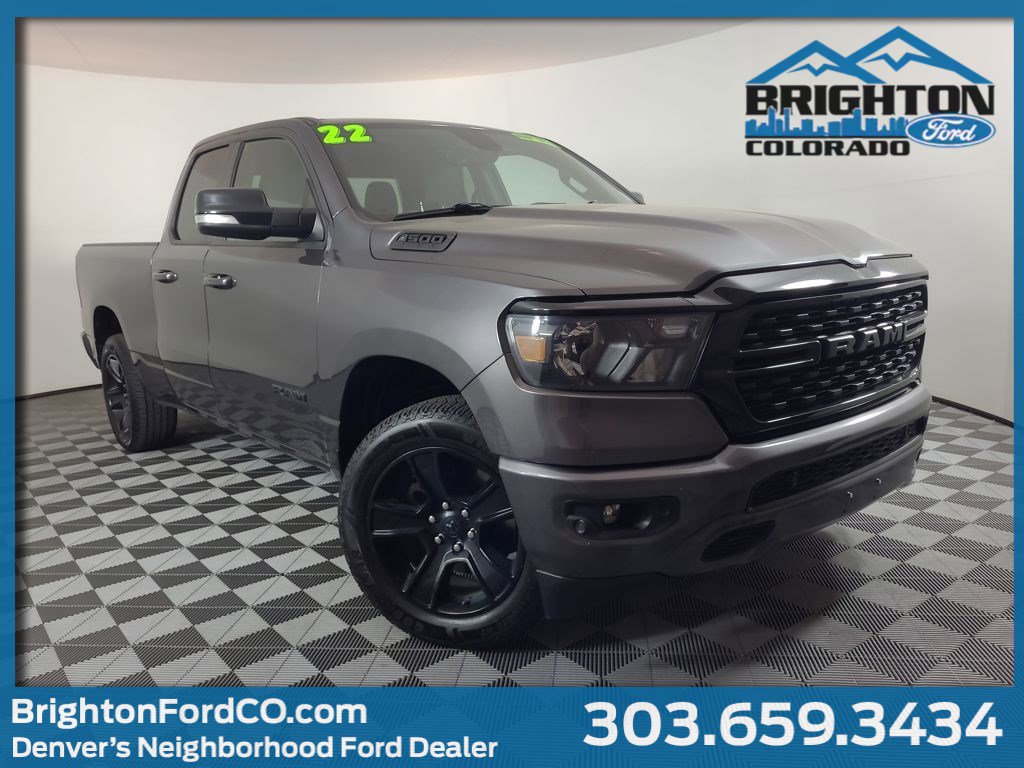 REARVIEW CAMERA SYST, BLUETOOTH HANDS FREE, CRUISE CONTROL, DUAL FACTORY AIR, HEATED STEERING WHEEL, HEATED SEAT PKG, PREMIUM WHEELS/TIRES, PARKING SENSORS, POWER ADJUSTABLE PEDALS, POWER SLIDING REAR WINDOW, PREMIUM AUDIO, POWER FOLDING SIDE MIRRORS, KEYLESS ENTRY, NIGHT EDITION, BIG HORN LEVEL 2 EQUIPMENT GROUP, CLASS IV RECEIVER HITCH, APPLE CARPLAY CAPABLE, ANDROID AUTO CAPABLE, ACCIDENT FREE CARFAX. Granite Crystal Metallic Clearcoat 2022 Ram 1500 Big Horn/Lone Star 4WD 8-Speed Automatic HEMI 5.7L V8 Multi Displacement VVT