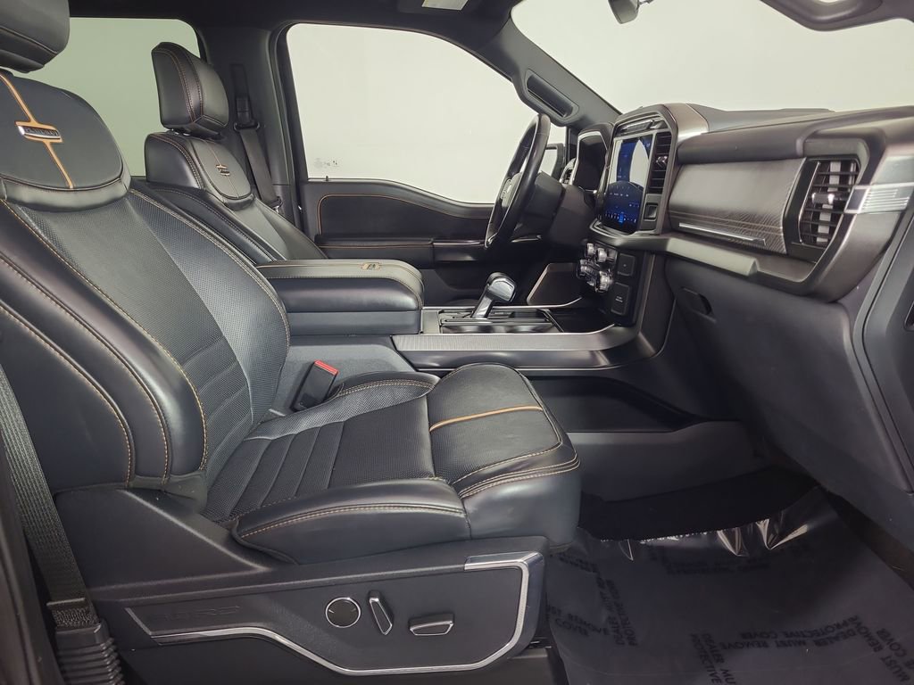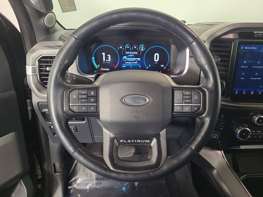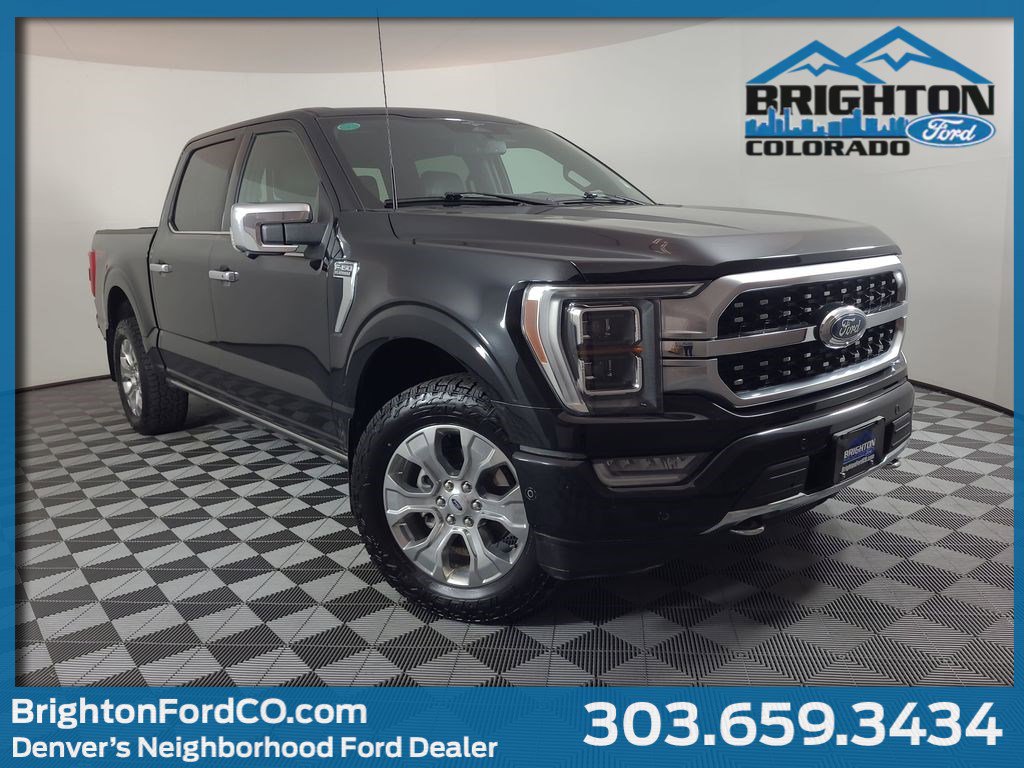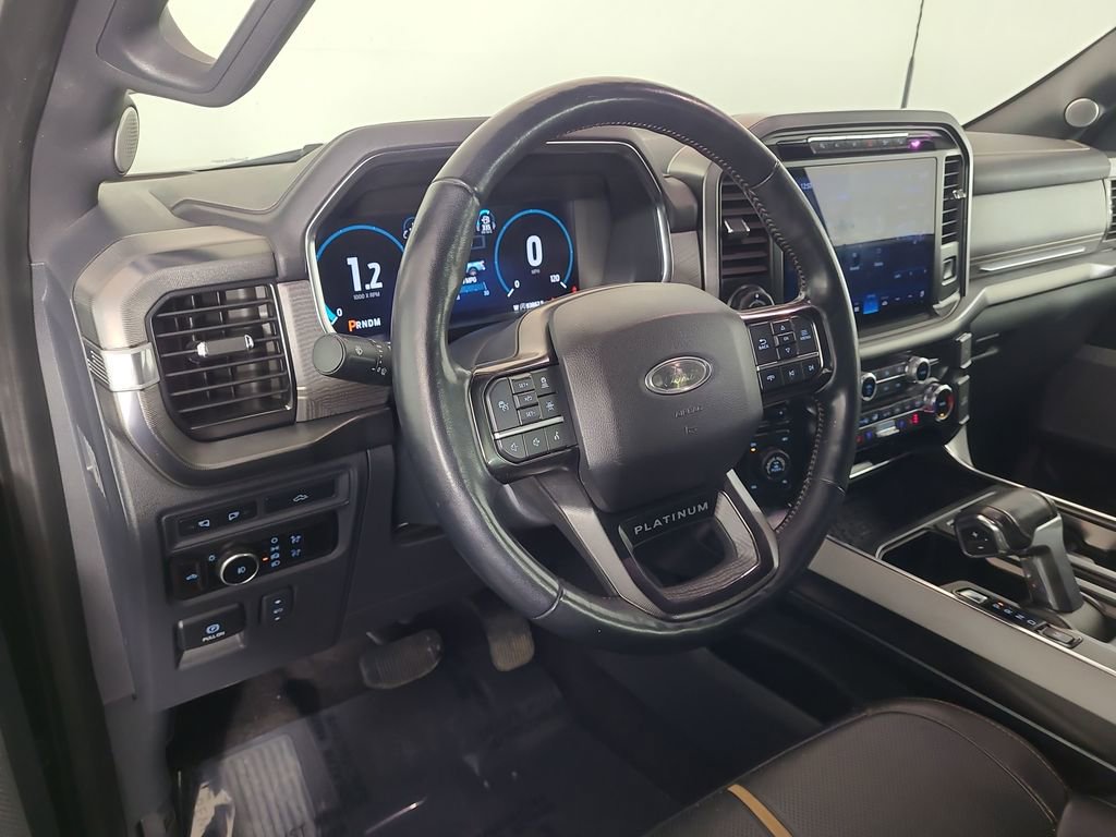 BLIND SPOT MONITORING SYSTEM, TWIN PANEL MOONROOF, LEATHER, 360-DEGREE CAMERA, REARVIEW CAMERA SYST, FX4 OFF-ROAD PACKAGE, BLUETOOTH HANDS FREE, DUAL FACTORY AIR, HTD/COOLED SEAT PKG, HTD MIRRORS, PREMIUM WHEELS/TIRES, POWER ADJUSTABLE PEDALS, POWER SLIDING REAR WINDOW, REAR HEATED SEATS, SYNC 4, KEYLESS ENTRY, TRAILER TOW PACKAGE, LED FOG LAMPS, POWER TAILGATE, BANG & OLUFSEN SOUND SYSTEM, EVASIVE STEERING ASSIST, TRAILER BRAKE CONTROLLER, WIRELESS CHARGING PAD, ACCIDENT FREE CARFAX, 4WD. Agate Black Metallic 2023 Ford F-150 Platinum 4WD 10-Speed Automatic 3.5L V6 EcoBoost