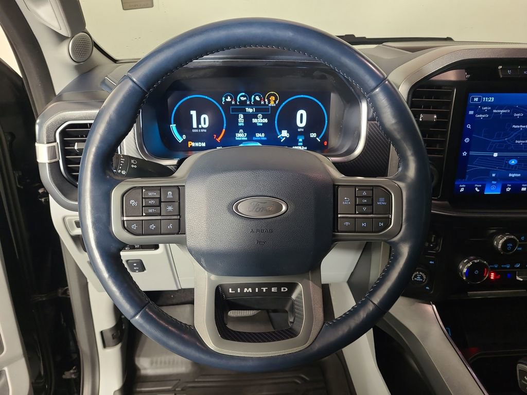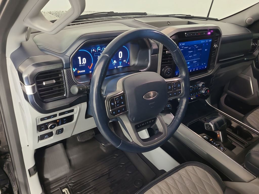 Priced below KBB Fair Purchase Price! ADAPTIVE CRUISE CONTROL, BLIND SPOT MONITORING SYSTEM, LANE MANAGEMENT SYSTEM, COLLISION WARNING SYSTEM, TWIN PANEL MOONROOF, LEATHER, 360-DEGREE CAMERA, REARVIEW CAMERA SYST, BLUETOOTH HANDS FREE, DUAL FACTORY AIR, HTD/COOLED SEAT PKG, PREMIUM WHEELS/TIRES, PARKING SENSORS, POWER ADJUSTABLE PEDALS, POWER SLIDING REAR WINDOW, PREMIUM AUDIO, POWER FOLDING SIDE MIRRORS, POWER RUNNING BOARDS, REMOTE START, REAR HEATED SEATS, SYNC 4, FORDPASS CONNECT, KEYLESS ENTRY, INTERIOR WORK SURFACE, WIRELESS CHARGING PAD, FORD BLUECRUISE CAPABLE, NAVIGATION CAPABLE, 3.5L PowerBoost Full-Hybrid V6, 4WD. Agate Black Metallic 2023 Ford F-150 Limited 4WD 10-Speed Automatic 3.5L PowerBoost Full-Hybrid V6