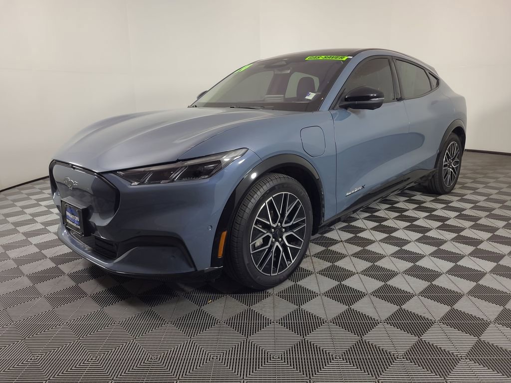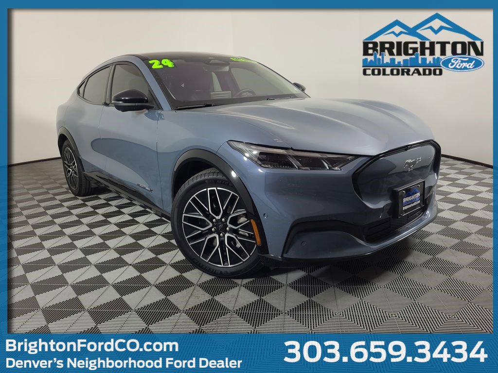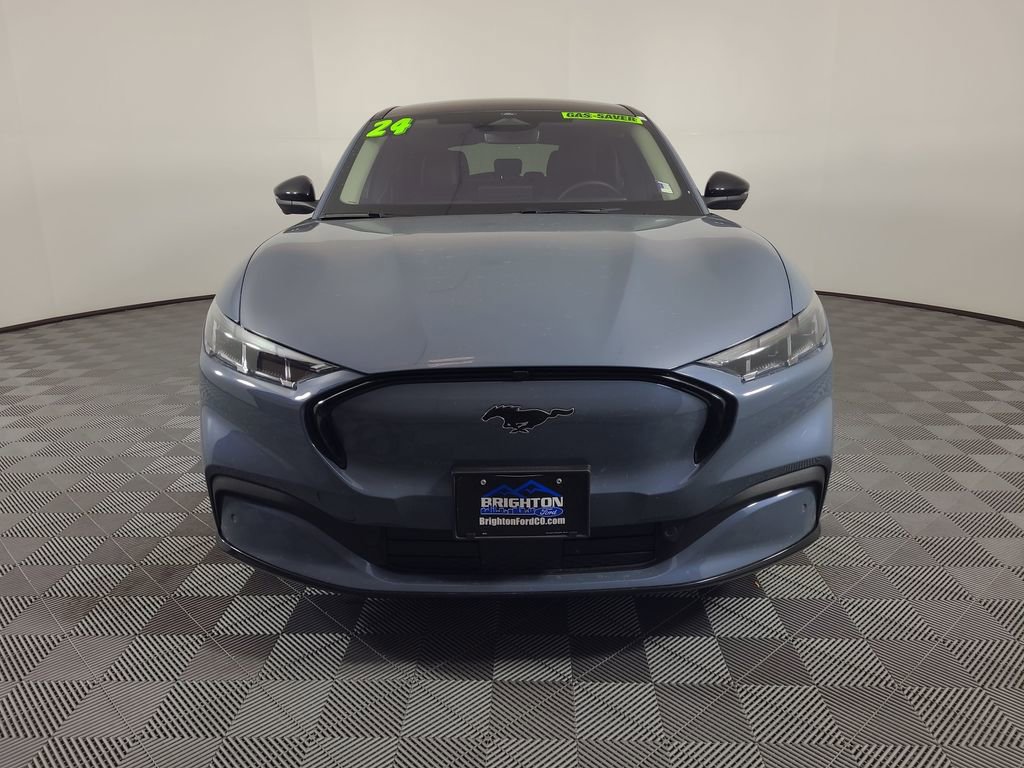 ADAPTIVE CRUISE CONTROL, BLIND SPOT MONITORING SYSTEM, LANE MANAGEMENT SYSTEM, COLLISION WARNING SYSTEM, ONE OWNER, PANORAMA ROOF, 360 CAMERA VIEW, REARVIEW CAMERA SYST, BLUETOOTH HANDS FREE, DUAL FACTORY AIR, HEATED STEERING WHEEL, HTD MIRRORS, HEATED SEAT PKG, POWER LIFTGATE, PREMIUM WHEELS/TIRES, PREMIUM AUDIO, POWER FOLDING SIDE MIRRORS, SYNC 4, FORDPASS CONNECT, 91KWH USABLE EXT NCM BATT, BLUECRUISE CAPABLE, NAVIGATION CAPABLE, ACCIDENT FREE CARFAX. Vapor Blue Metallic 2024 Ford Mustang Mach-E Premium AWD Single-Speed Automatic Electric Motor