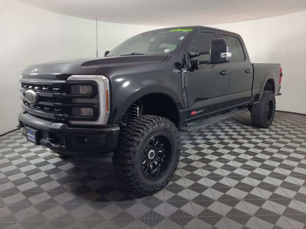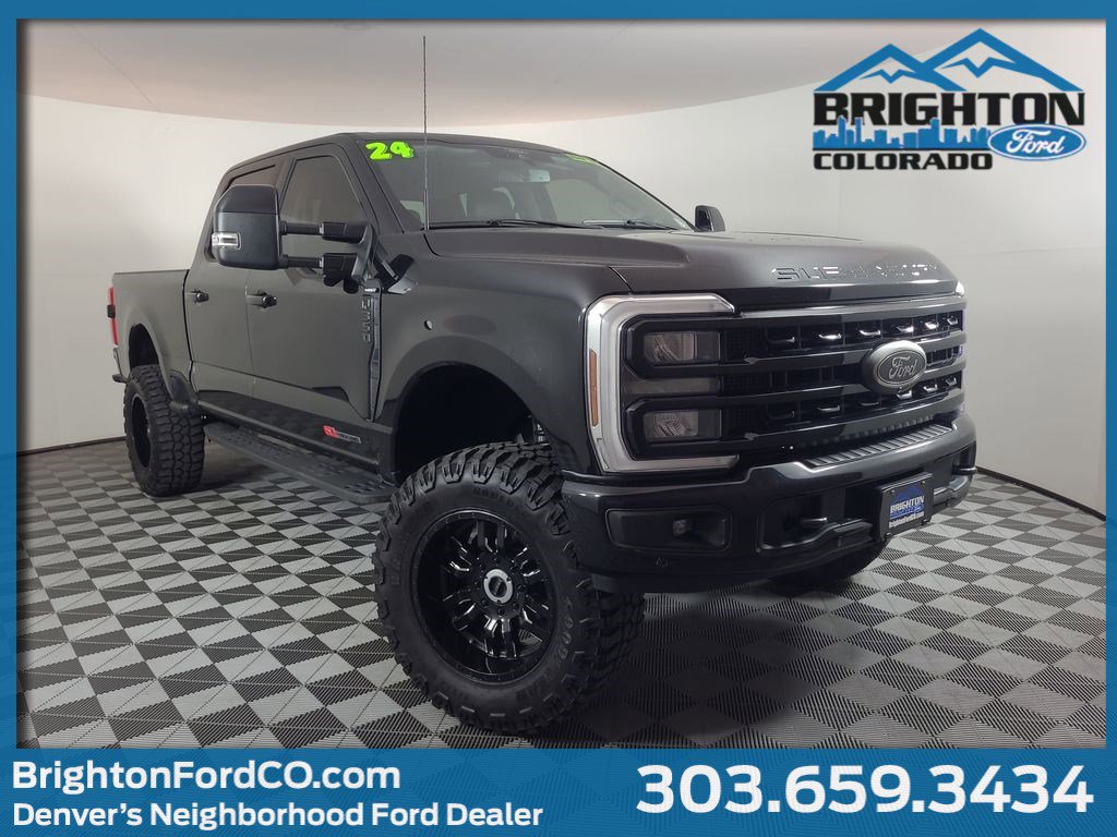 BLIND SPOT MONITORING SYSTEM, ONE OWNER, LEATHER, 360-DEGREE CAMERA, REARVIEW CAMERA SYST, BLUETOOTH HANDS FREE, DUAL FACTORY AIR, HTD/COOLED SEAT PKG, LIFT KIT, HEATED STEERING WHEEL, HTD MIRRORS, PREMIUM WHEELS/TIRES, PARKING SENSORS, POWER SLIDING REAR WINDOW, PREMIUM AUDIO, POWER FOLDING SIDE MIRRORS, SYNC 4, SPRAY IN BED LINER, KEYLESS ENTRY, BLACK APPEARANCE PACKAGE, TREMOR OFF-ROAD PACKAGE, 12000# GVWR PACKAGE, ENGINE BLOCK HEATER, ULTIMATE PACKAGE, TAILGATE STEP, TRAILER BRAKE CONTROLLER, BANG & OLUFSEN SOUND SYSTEM, HEAD UP DISPLAY, ACCIDENT FREE CAR FAX, ORIGINAL MSRP $92,775, 4WD. Agate Black Metallic 2024 Ford F-350SD Lariat 4WD 10-Speed Automatic 6.7L High Output Power Stroke V8 Diesel