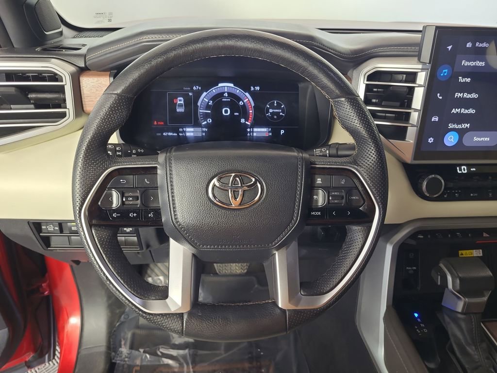 Priced below KBB Fair Purchase Price! ADAPTIVE CRUISE CONTROL, BLIND SPOT MONITORING SYSTEM, LANE MANAGEMENT SYSTEM, COLLISION WARNING SYSTEM, NAVIGATION SYSTEM, ONE OWNER, PANORAMA ROOF, 360 CAMERA VIEW, REARVIEW CAMERA SYST, BLUETOOTH HANDS FREE, DUAL FACTORY AIR, HTD/COOLED SEAT PKG, HTD MIRRORS, PREMIUM WHEELS/TIRES, PARKING SENSORS, POWER SLIDING REAR WINDOW, PREMIUM AUDIO, POWER FOLDING SIDE MIRRORS, RUNNING BOARDS, SPRAY IN BED LINER, BED STEP, APPLE CARPLAY CAPABLE, ANDROID AUTO CAPABLE, 4WD, Rich Cream w/Leather Seat Trim. Supersonic Red 2024 Toyota Tundra 1794 4WD 10-Speed Automatic 3.4L V6