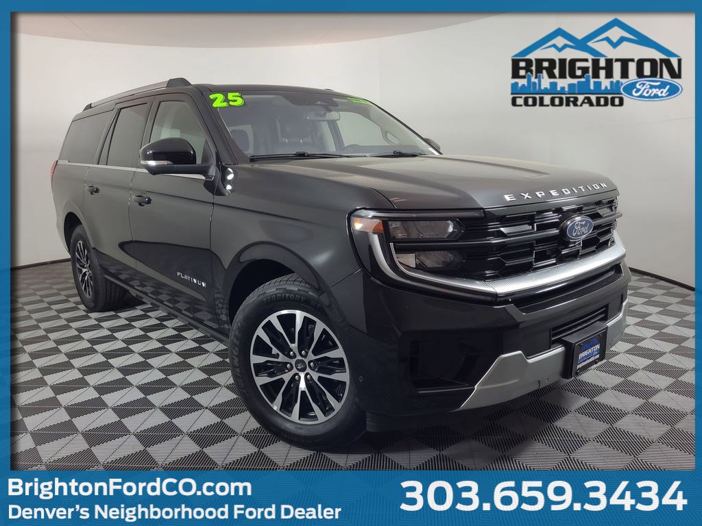 Priced below KBB Fair Purchase Price! ADAPTIVE CRUISE CONTROL, BLIND SPOT MONITORING SYSTEM, LANE MANAGEMENT SYSTEM, COLLISION WARNING SYSTEM, ONE OWNER, PANORAMA ROOF, LEATHER, BLUETOOTH HANDS FREE, HTD/COOLED SEAT PKG, HEATED STEERING WHEEL, HTD MIRRORS, PREMIUM WHEELS/TIRES, POWER ADJUSTABLE PEDALS, POWER RUNNING BOARDS, REAR HEATED SEATS, MULTI ZONE CLIMATE CONTROL, 3RD ROW SEATS, KEYLESS ENTRY, BLUECRUISE CAPABLE, WIRELESS CHARGING PAD, NAVIGATION CAPABLE, FORD CO-PILOT360 ACTIVE 2.0. Agate Black Metallic 2025 Ford Expedition Max Platinum 4WD 10-Speed Automatic EcoBoost 3.5L V6 GTDi DOHC 24V Twin Turbocharged