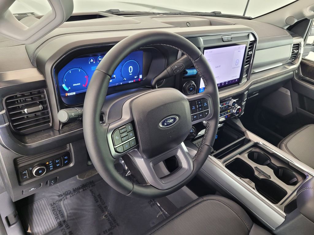 BLIND SPOT MONITORING SYSTEM, COLLISION WARNING SYSTEM, ONE OWNER, TWIN PANEL MOONROOF, 360-DEGREE CAMERA, REARVIEW CAMERA SYST, BLUETOOTH HANDS FREE, DUAL FACTORY AIR, HTD/COOLED SEAT PKG, HEATED STEERING WHEEL, HTD MIRRORS, PREMIUM WHEELS/TIRES, PARKING SENSORS, POWER ADJUSTABLE PEDALS, POWER SLIDING REAR WINDOW, PREMIUM AUDIO, POWER FOLDING SIDE MIRRORS, RUNNING BOARDS, SYNC 4, FORDPASS CONNECT, SPRAY IN BED LINER, KEYLESS ENTRY, LARIATE ULTIMATE PACKAGE, TAILGATE STEP, MAX RECLINE DRIVER PASSENGER SEAT, UPFITTER SWITCHES, ROOF CLEARANCE LIGHTS, TREMOR OFF-ROAD PACKAGE, BLACK APPEARANCE PACKAGE, NAVIGATION CAPABLE, ACCIDENT FREE CARFAX, 4WD. Agate Black Metallic 2025 Ford F-350SD Lariat 4WD 10-Speed Automatic 6.7L High Output Power Stroke V8 Diesel