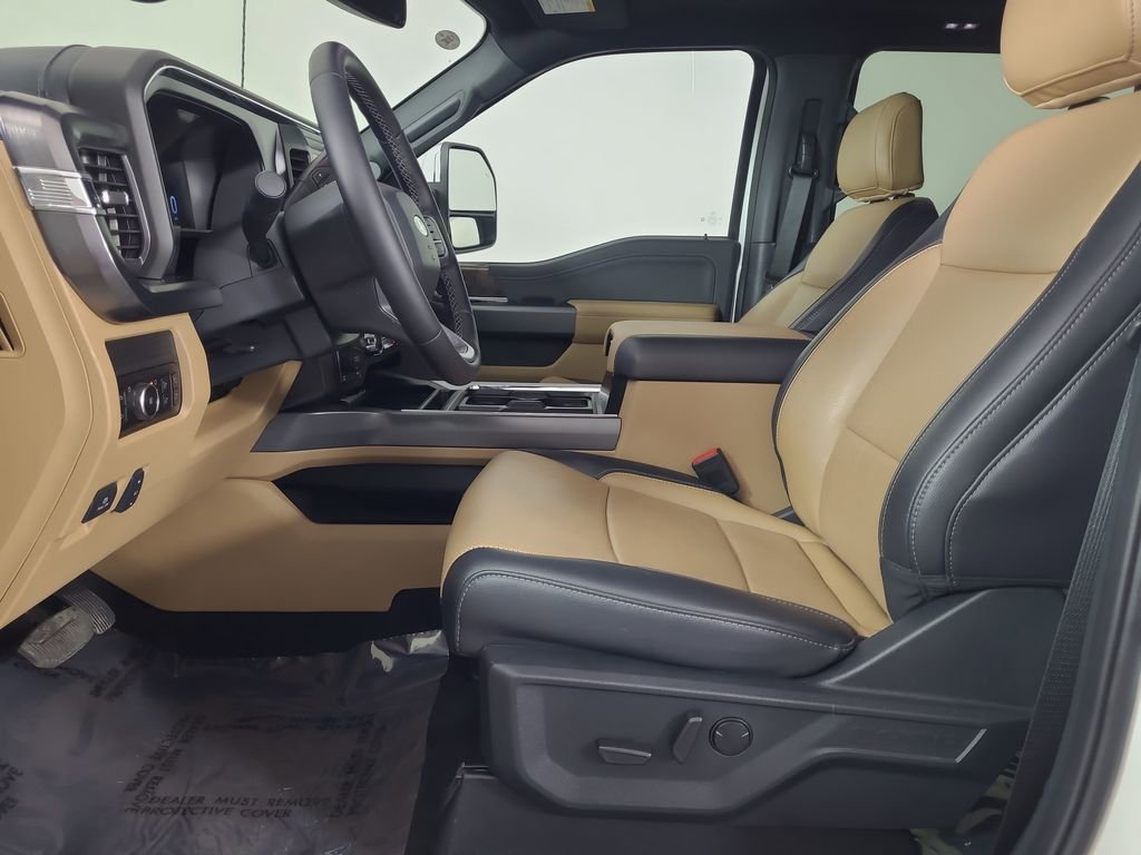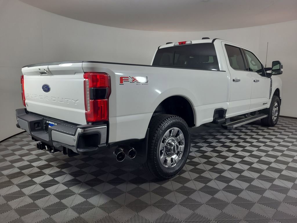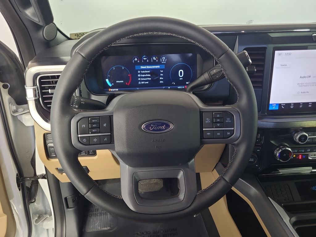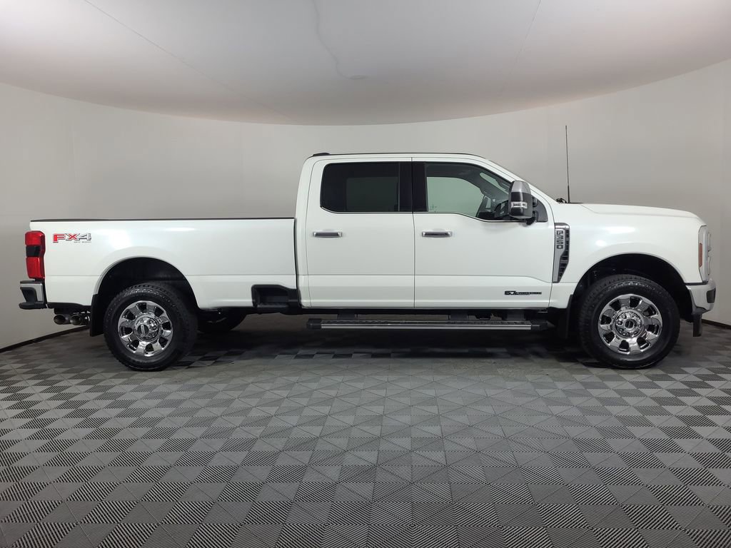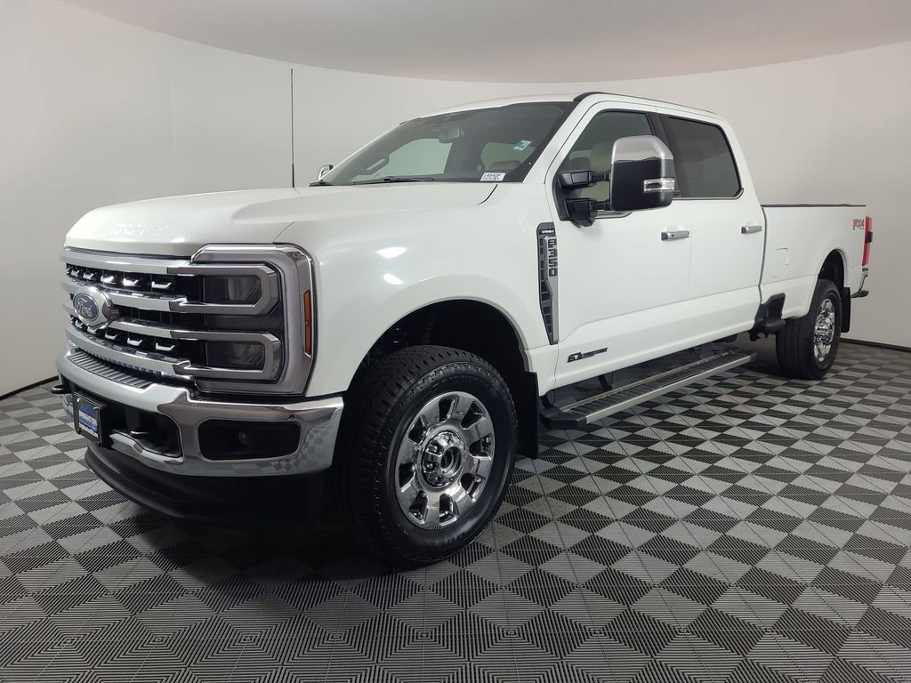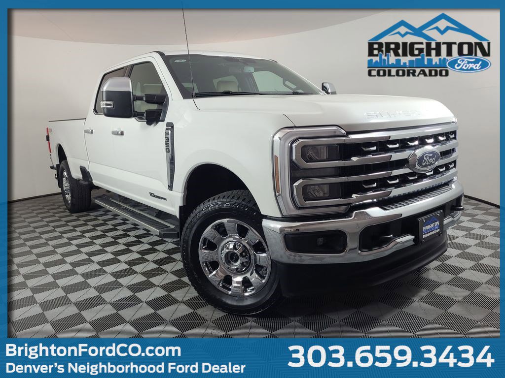 BLIND SPOT MONITORING SYSTEM, COLLISION WARNING SYSTEM, ONE OWNER, TWIN PANEL MOONROOF, 360-DEGREE CAMERA, REARVIEW CAMERA SYST, FX4 OFF-ROAD PACKAGE, BLUETOOTH HANDS FREE, DUAL FACTORY AIR, HTD/COOLED SEAT PKG, HEATED STEERING WHEEL, HTD MIRRORS, PREMIUM WHEELS/TIRES, PARKING SENSORS, POWER ADJUSTABLE PEDALS, POWER SLIDING REAR WINDOW, PREMIUM AUDIO, POWER FOLDING SIDE MIRRORS, RUNNING BOARDS, SYNC 4, FORDPASS CONNECT, KEYLESS ENTRY, 5TH WHEEL HITCH PREP PACKAGE, CHROME PACKAGE, NAVIGATION CAPABLE, ACCIDENT FREE CARFAX, 4WD. Star White Metallic Tri-Coat 2025 Ford F-350SD Lariat 4WD 10-Speed Automatic Power Stroke 6.7L V8 DI 32V OHV Turbodiesel
